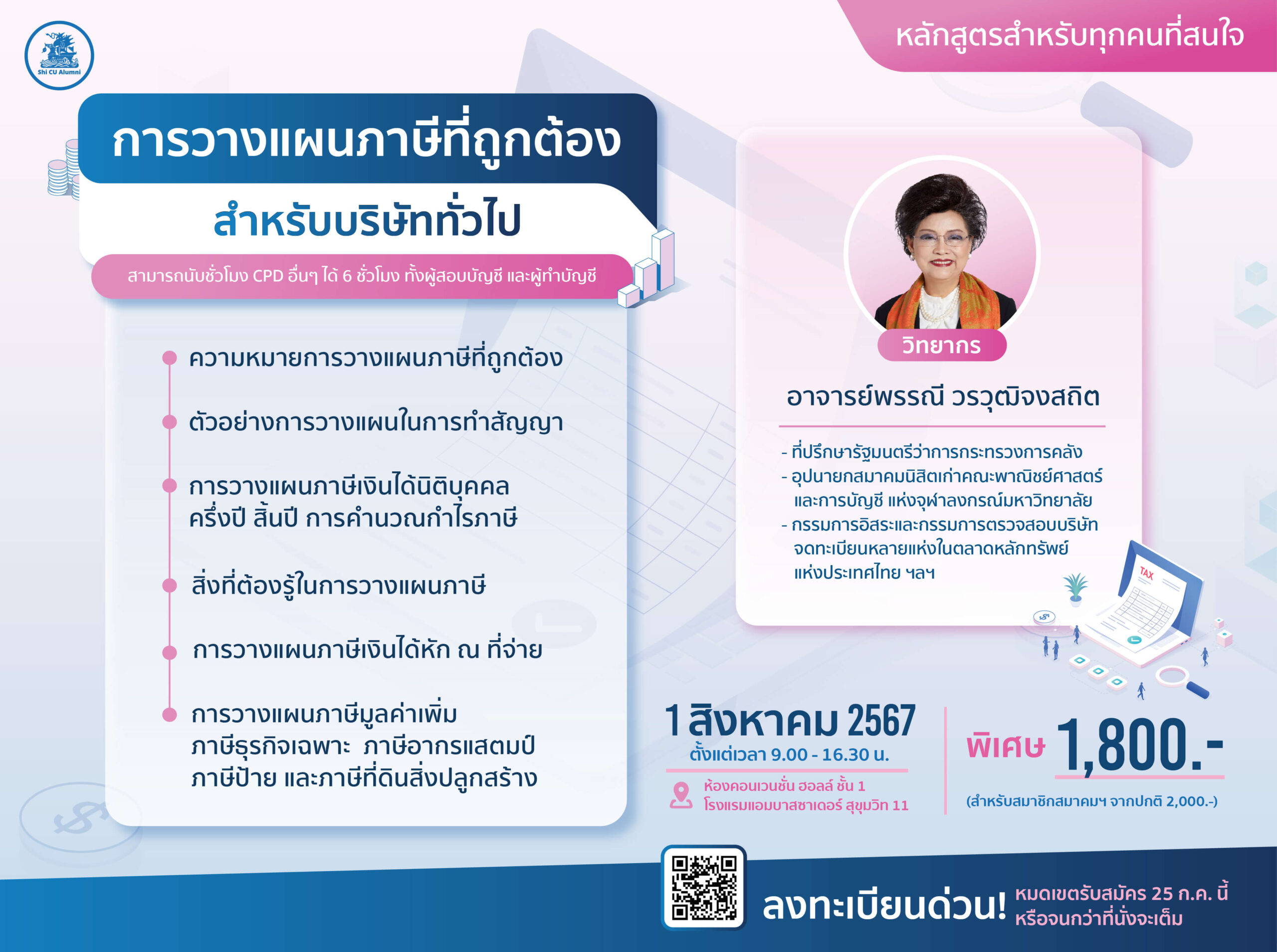 เปิดลงทะเบียนแล้ว! กับหลักสูตรการวางแผนภาษีที่ถูกต้องสำหรับบริษัททั่วไป